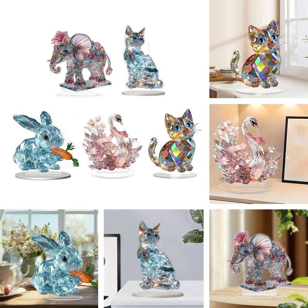 Akrylowe Kolorowe Zwierzęta Kot Pies Słoń 2D Płaska Figurka,Stół,Ozdoba Dekoracja Biurko Dom,Biuro,Studio,Kawiarnia,Pokój,Gablota