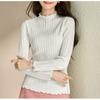 Bottom shirt women's spring and autumn inner wear new semi-turtleneck fungus edge knitted sweater medium neck long sleeve slim sweater