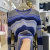 Contrasting Stripes Hollow Long Sleeve Knitted Sweater Women's Autumn and Winter New Fashion Age Reduction Women's Bottom Sweater