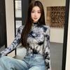 8 ink bottoming shirt women's retro trend versatile semi-turtleneck gradual change tie-dye printing women's spring and autumn tops