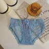 Francuskie Retro Satynowe Białe Koronkowe Majtki z Siateczki - Damskie Seksowne Trójkątne o Średnio Niskim Stanie