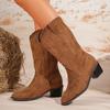 Wciągnij i zdejmij: Te kowbojskie buty do połowy łydki z szeroką cholewką łatwo się zakłada i zdejmuje.. Krój mankietu w kształcie litery V podkreśla nogi, nadając im korzystny wygląd.