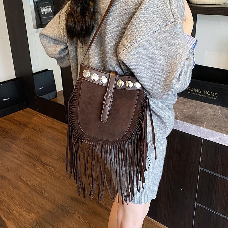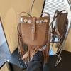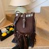Vintage matowa torba damska jesienno-zimowa nowa z frędzlami bohemska listonoszka na ramię torba wiadro