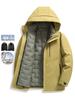 Mens Khaki Down Jacket For Men Detachable Hood Winter Hiking Puffer Coat Warm Outdoor Mountaineering Parka Cold Weather Coat
