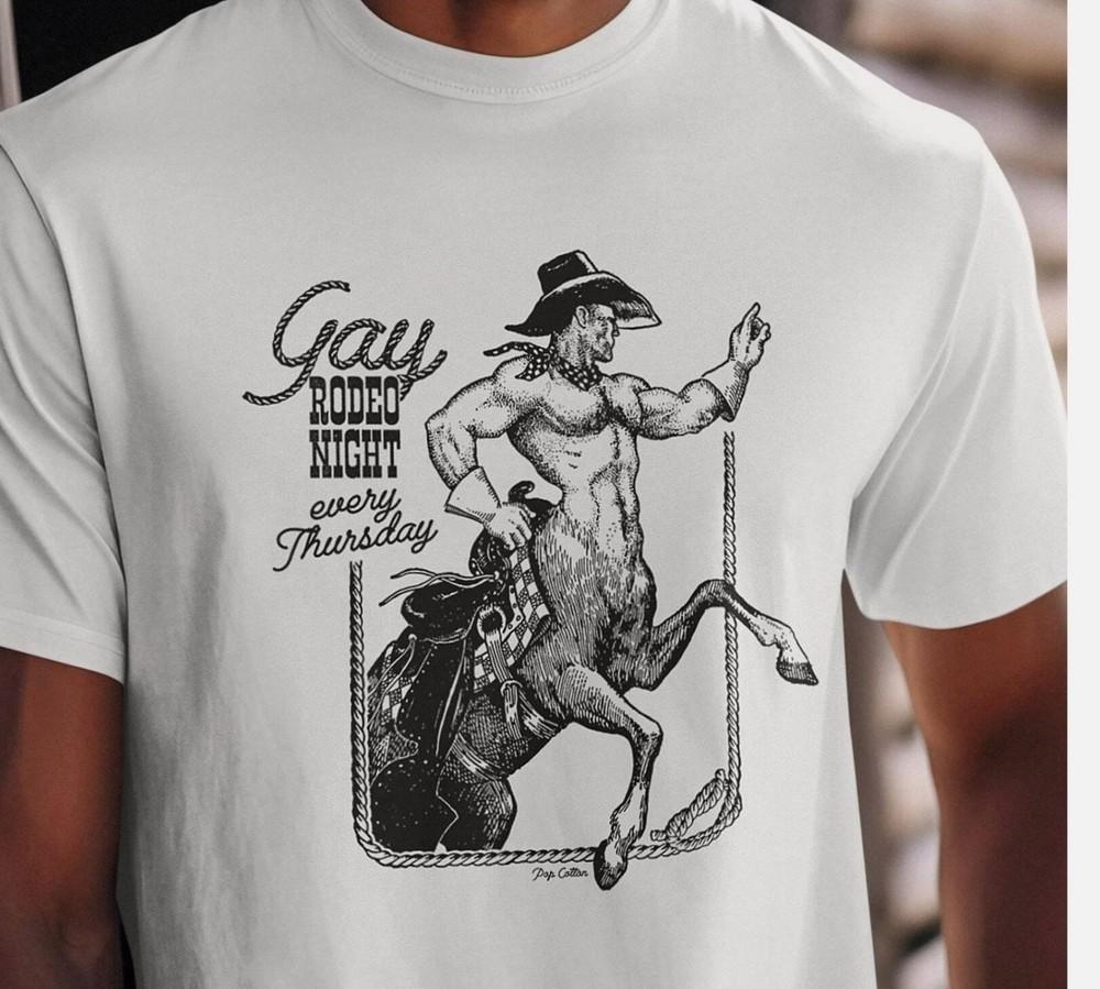 Vintage Gay Rodeo Night Sexy Centaur Cowboy Pop Cotton Unisex Tee T-Shirt