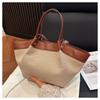 Spring new retro portable shoulder bag niche design canvas splicing large capacity tote bag
