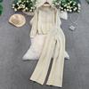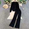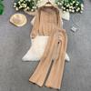 Jesień Zima Damski Designerski Wzorzysty Dzianinowy Sweter Spodnie Dwuczęściowy Zestaw Długi Rękaw Jednorzędowa Kurtka Top i Spodnie z Elastycznym Pasem Dres