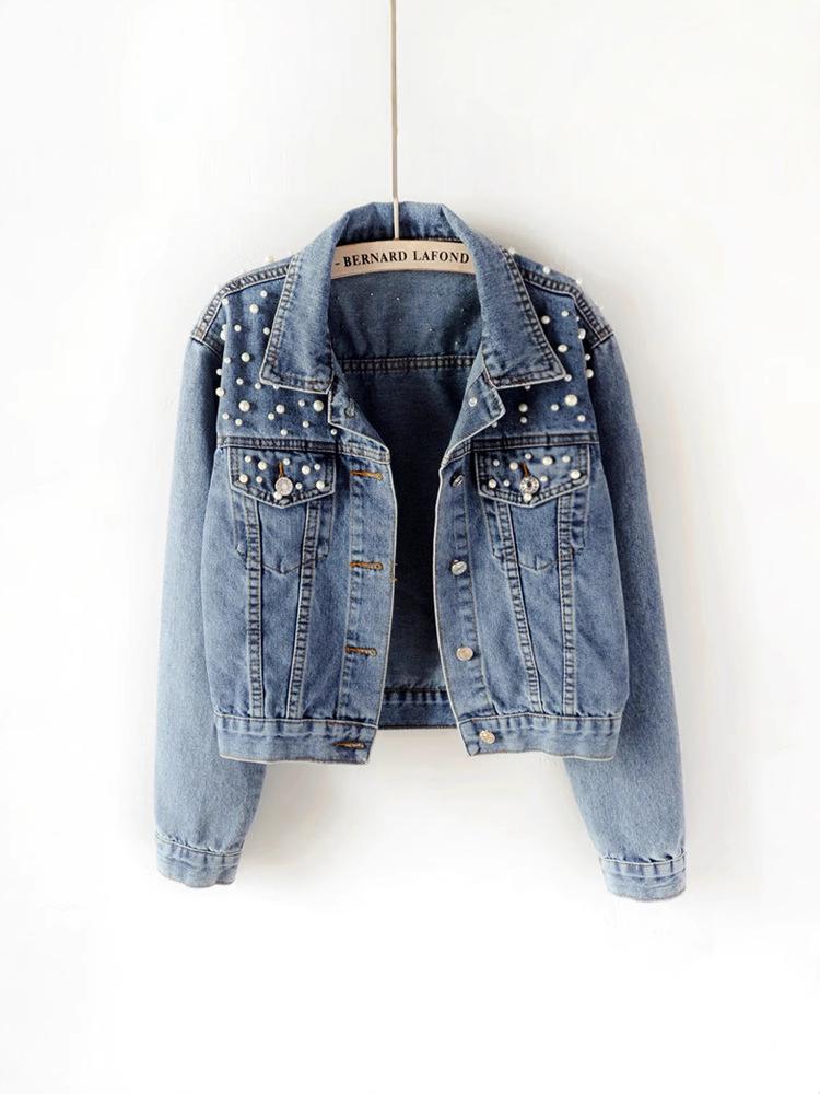 Podkreśl swój styl tą elegancką damską kurtką dżinsową oversize, wykonaną z wysokiej jakości bawełny dla wygodnego dopasowania. Ta kurtka posiada wykwintne haftowane perłowe koraliki, które dodają odrobinę wyrafinowania do jej klasycznego designu.. Długie rękawy i dopasowany dekolt zapewniają szykowny i stylowy wygląd, idealny na każdą okazję.