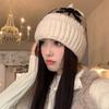 Checkerboard Plaid Knitted Hat for Women In Autumn and Winter Korean Style Niche Big Head Wool Hat Japanese Face Showing Small Christmas Hat
