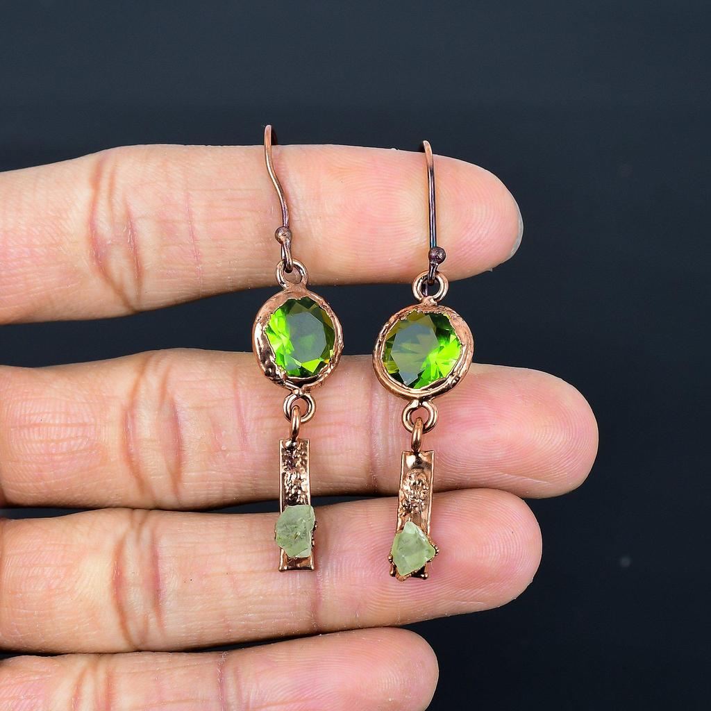 Peridot Earrings Gemstone Jewelry, Copper Electroformed Earrings, Handmade Jewelry Birthstone Earrings, Gift For Him