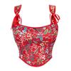 Damski seksowny gorset gorset Top oczko sznurowane kwiatowy Print krótkie bluzki typu push up Vintage Tank Top odzież klubowa gorset