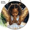 Złote Skrzydła Czarny Anioł Drewniany Znak - Anioł Okrągły Znak do Dekoracji Wiszącej na Ścianie Drzwi Wejściowych - Idealna Dekoracja Wisząca do Domu
