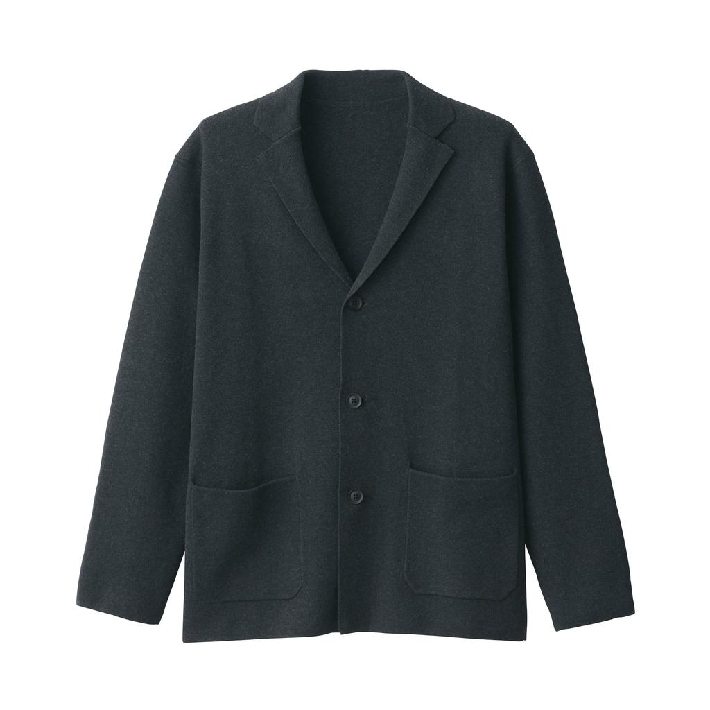 MUJI Pralny dzianinowy kardigan z prążkami Milan, Ciemny, Rozmiar AA0R0A4A, Męski, Szary, L,