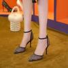 6188-8 New temperament high heels women's pointed head thin heel rhinestone mesh single shoes shallow bridesmaid women's shoes wedding shoes