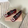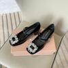 A66-1 Internet celebrity square buckle rhinestone single shoes women's new French square head thick heel one-word buckle belt medium heel Mary Ja