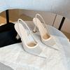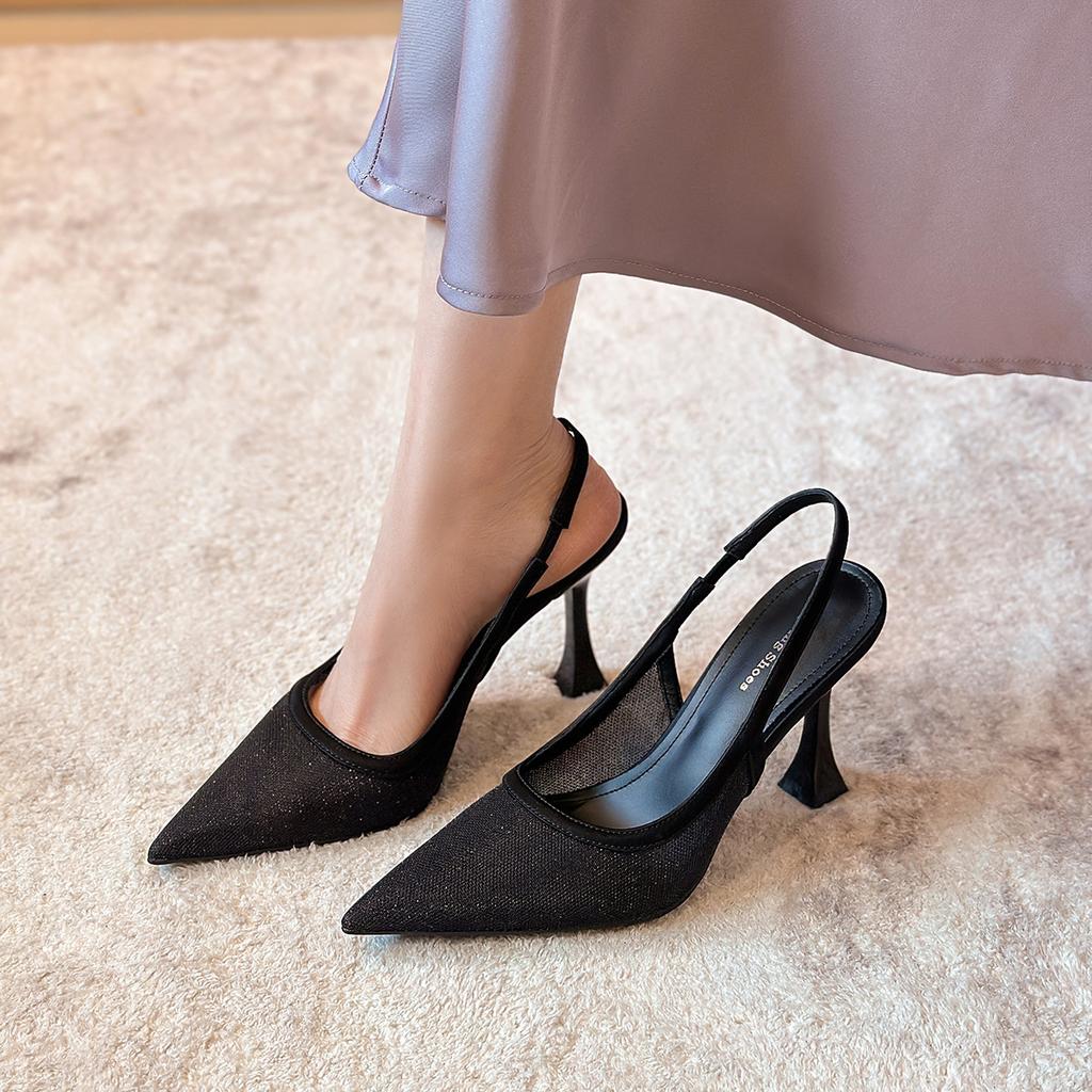 7199-15 Xiaoxiangfeng sexy mesh splicing pointed high-heeled single shoes spring temperament empty banquet stiletto shoes