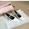 3337-60 one-word with square head thick heel Mary Jane single shoes niche new metal buckle with middle heel shoes commuter shoes