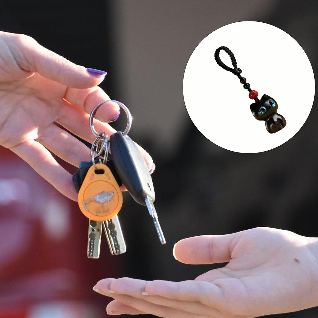 Drewno Hebanowe Brelok Kot Szczęścia Ręcznie Robiony Naturalny Drewniany Wiszący Ornament Dekoracja na Klucze Torby Plecaki