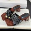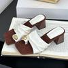 Fashion Fashion Metal Decoration Design High Heel Slippers Women High Quality Faux Suede Slide Sandals Comfort Clip Toe Brand Flip Flops