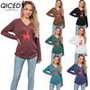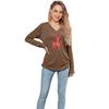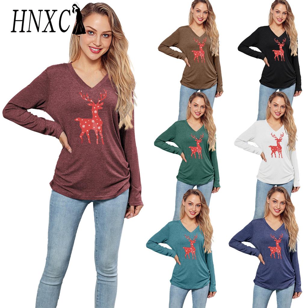 HNXC Solid-color Christmas Snowflake Spotted Deer Print Casual Long-sleeved T-shirt for Women