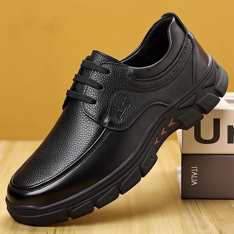 Męskie skórzane buty wiosna nowe miękka skóra lekkie antypoślizgowe skórzana powierzchnia wiek średni i starszy okrągły nosek buty taty modne biznesowe buty skórzane