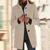 Damski płaszcz casualowy w jednolitym kolorze, długi rękaw, kołnierz zapinany na guziki, kieszeń, wełniana kurtka