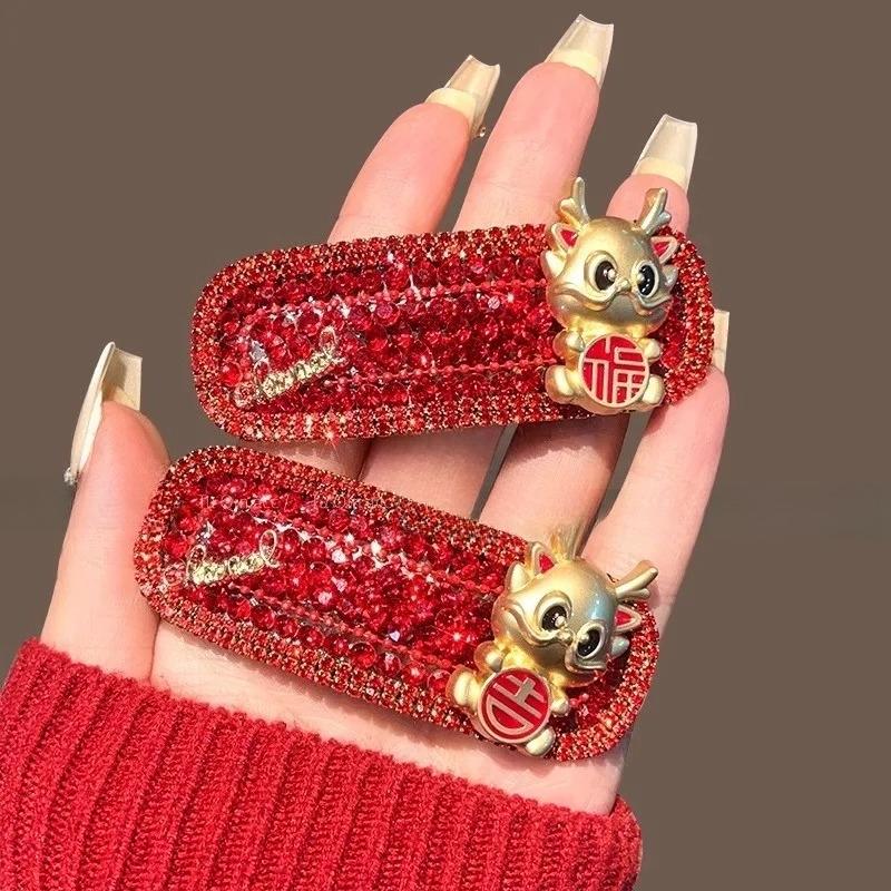 Fashion Animal Zodiac Dragon Hair Clip New Year Headwear Chinese Style Red Rhinestone Hairpin Headdress Hair Accessories Female