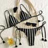 Seksowne Czarne Pasiaste Bikini 2025 Kobiety Halter Plisowane Push Up Mikro Kostium Kąpielowy Brazylijski Plażowy Kostium Kąpielowy Wakacyjny Stringi Stroje Kąpielowe