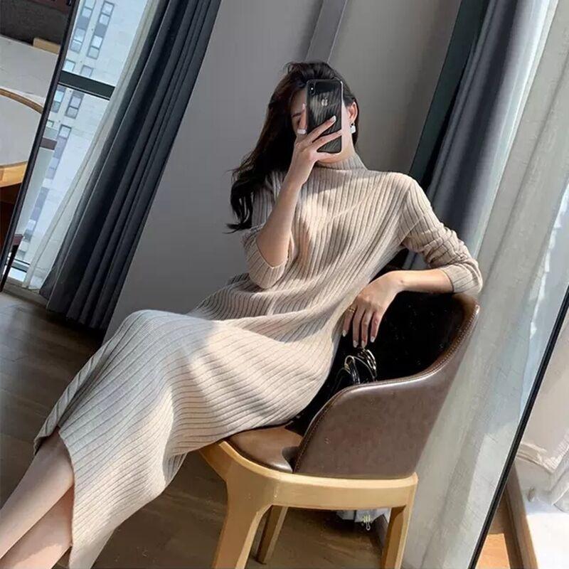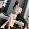 New knee-bottom long dress with long sweater inside, knitted dress for children, autumn and winter
