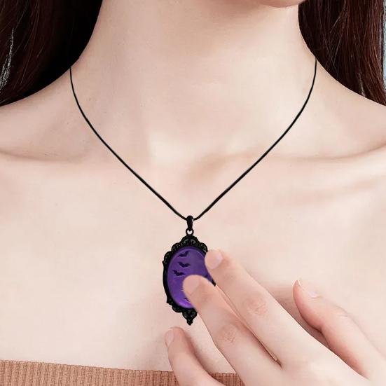 Naszyjnik z wisiorkiem nietoperza dla kobiet, gotycki choker, owalny wisiorek z wzorem nietoperza, biżuteria vintage czarownicy, prezent na Halloween, urodziny, rocznicę