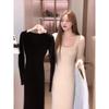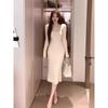 [] Autumn new beautiful slim-fit hip-wrapped bottom with long-sleeved knitted dress for children