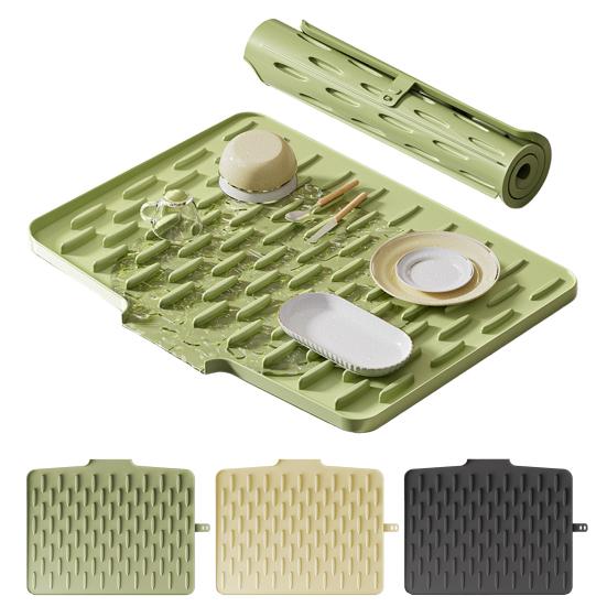 Łatwe do czyszczenia i przechowywania, wystarczy spłukać lub przetrzeć do konserwacji. Jego lekka i zwijana konstrukcja pozwala na kompaktowe przechowywanie, oszczędzając cenną przestrzeń kuchenną.. Nie tylko do suszenia naczyń, ta wielofunkcyjna mata może być również używana do przechowywania w łazience, jako pojemnik na gąbkę lub mydelniczka, a nawet jako podkładka ochronna pod urządzenia.. Zwiększ wydajność w całym domu dzięki tej wszechstronnej silikonowej macie do suszenia.
