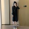 Retro black knitted dress temperament slim and thin half turtleneck sweater skirt base long skirt spring