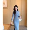 Autumn improved cheongsam high-end engagement dress high-end blue knitted dress