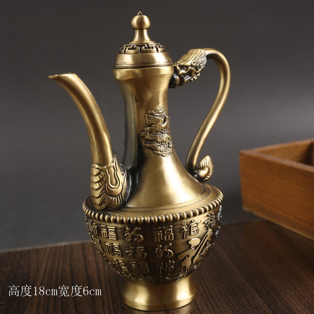 Mosiężny dzbanek na wino Longfeng Chengxiang miedziana ozdoba rękodzielnicza czysta miedź Baifu restauracja dzbanek na wino bankiet domowy retro miedziane naczynie
