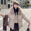 Krótka odpinana kurtka puchowa z futrzanym kołnierzem