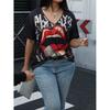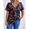 XL-7XL Damski T-shirt Plus Size z Gradientem, Casualowy, z Nadrukiem 3D, Luźny, z Dekoltem w Serek, z Krótkim Rękawem