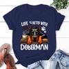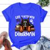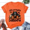 Hot Life Is Better With Coffee Doberman Graphic Short Sleeve T-Shirts For Men Women Shirts Loose T-Shirt Casual Summer T-Shirts