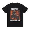 Przetrwałem dzisiejszy ból brzucha T-shirt Śmieszny mem z kotem Koszulka z krótkim rękawem Męska Damska Bawełniana Casualowa Oversize T-shirty Streetwear