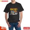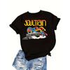 Damski T-shirt graficzny Wzór Soul Train z wyrazistym żółtym napisem Kolorowy nadruk retro Okrągły dekolt Krótki rękaw Casualowa góra