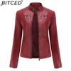 BITCED Women's Casual Leather Jacket Stand-up Collar Slim-Fit Outerwear Spring/Autumn Solid-Colour Leather Jacket