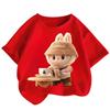 Children's Labubu T-shirt Cartoon Print Girl Short Sleeved Round Neck Top New Fashionable Loose T-shirt