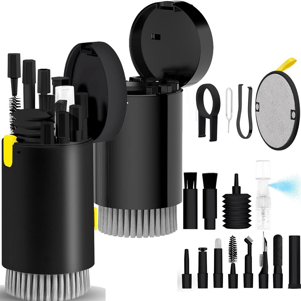 [Narzędzie czyszczące wielofunkcyjne 20-w-1] Ten wielofunkcyjny zestaw do czyszczenia może czyścić nie tylko szczeliny urządzeń, ale także kurz z ekranów. Zestaw czyszczący łączy głównie funkcje takie jak czyszczenie klawiatur, słuchawek, zdejmowanie klawiszy, czyszczenie ekranów LCD i wydmuchiwanie kurzu.. Jego kompaktowy rozmiar oznacza, że możesz mieć jeden w szufladzie biurka, w samochodzie lub w torbie.. Nadaje się nie tylko do czyszczenia klawiatur, ale także różnych obszarów sprzętu biurowego, takich jak ekrany słuchawek, aparaty fotograficzne i szczeliny pilotów zdalnego sterowania.