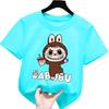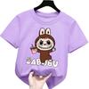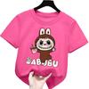 2025 New Labubu Children's T-shirt LABUBU Holding Milk Tea Pattern Girl Round Neck Short Sleeved Casual Versatile Clothing