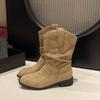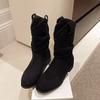 Retro thick-heeled short boots women's 2025 autumn new V-mouth knight boots pleated stacking boots western cowboy Martin boots