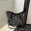 New casual shoulder bag large capacity armpit bag canvas bag large capacity trend graffiti portable tote bag