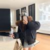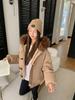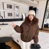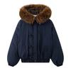 Damska nowa kurtka z kapturem z kołnierzem z futra, zapinana na guziki z rogu, zimowa, lekka, ocieplana, puszysta, ciepła, luźna, z wysokiej jakości tkaniny, casualowa, sportowa, bawełniana odzież