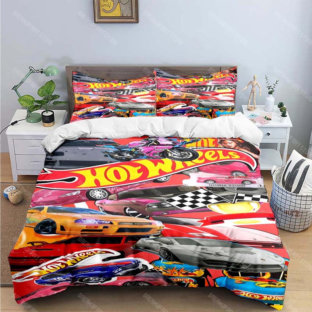 Modny Kreskówkowy Gorący Nadruk W-Wheels Zestawy Pościeli Zestaw Artykułów do Łóżka Poszwa na Kołdrę Zestaw Kołdry Zestaw Pościeli Luksusowy Prezent