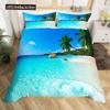 Letni Zestaw Poszwy na Kołdrę Queen Plażowy Zestaw Pościeli Oceanicznej Hawajskie Palmy Życie Morskie Fale Morskie Ryby Nadruk Zestaw Poszwy na Kołdrę