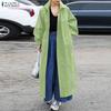ZANZEA Damski casualowy płaszcz trenczowy z cienkiego materiału z luźnym krojem i długim rękawem, z kołnierzykiem wykładanym